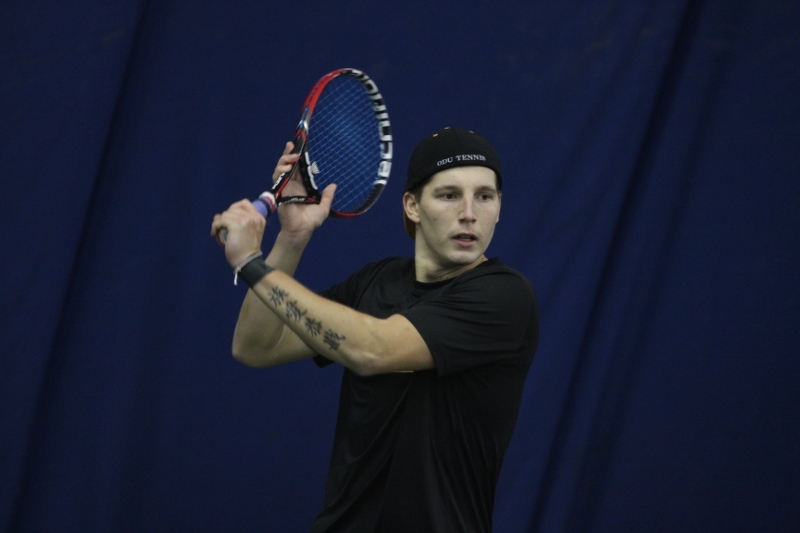 Doubles play proved a difference maker for ODU today as they were able to take 3-of-3 courts. Arklon Del Pino (So./Lima, Peru) and Patrick Ohanian (Sr./Hudson, OH) earned the first point win a convincing win on court two, 8-1. Gabor Csonka (Fr./Nyiregyhaza, Hungry) and Justin Tjon (Jr./Willemstad, Curacao) continued their strong play, winning 8-3 on court one. On court three, Gerardo Perez (Sr./Mexico City, Mexico) and Stijn Van der Zee (Fr./Rotterdam, The Netherlands) won a back and forth match; a tight 9-8 (5) win to conclude doubles play.